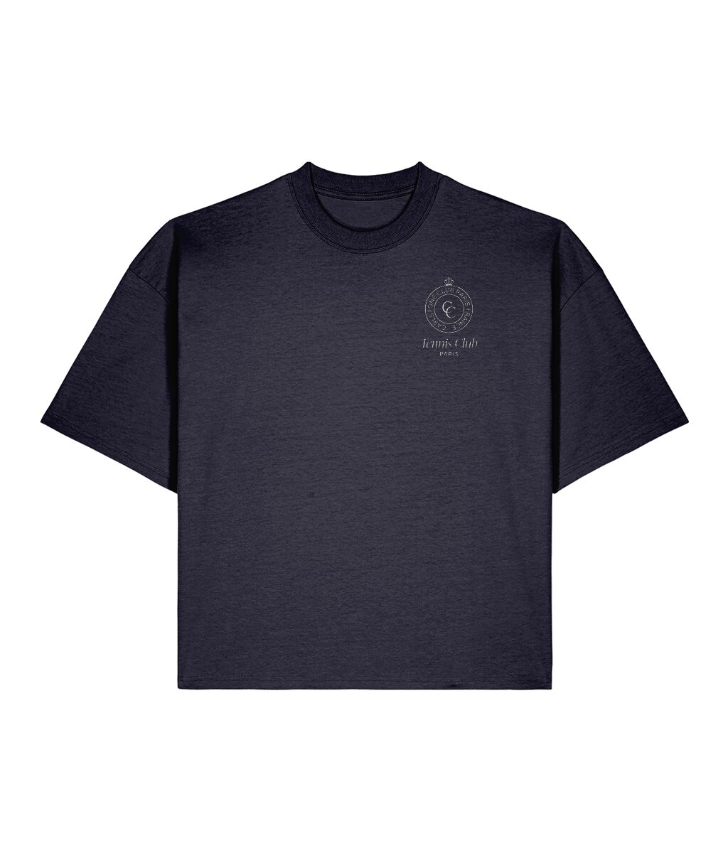 French Navy. Boxy cut. The tee that works harder than it looks. 50% recycled, 50% organic — worn on court, on the terrace, in the city. Frame 191 is not a number. It’s a reference.